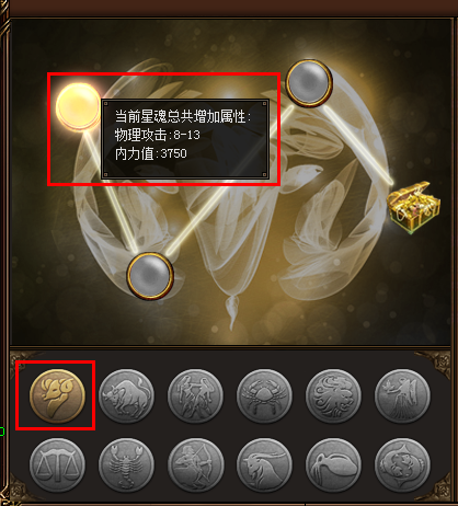 1、 星魂系统是一套以提升12宫星魂获得攻击属性,防御属性,内力值,抵抗幸运的系统。